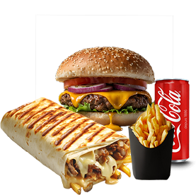 Cheese burger + 1 Tacos au choix + Frites + 1 Boisson 33cl au choix.
