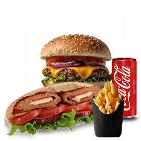 Cheese burger + 1 sandwich au choix + Frites + 1 Boisson 33cl au choix.